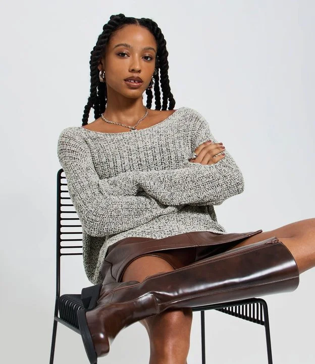 Blusa em Tricô Retilíneo com Textura Furadinha Cinza