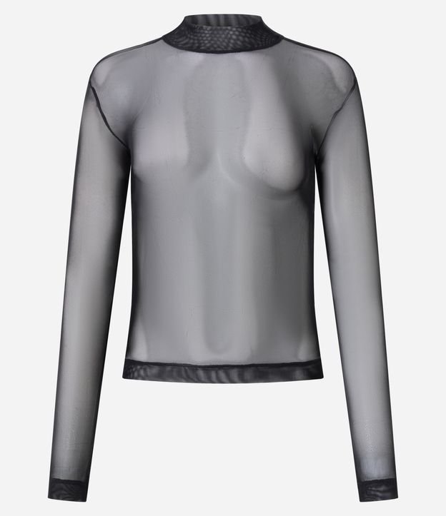 Blusa em Tule com Transparência e Golinha Alta Preto