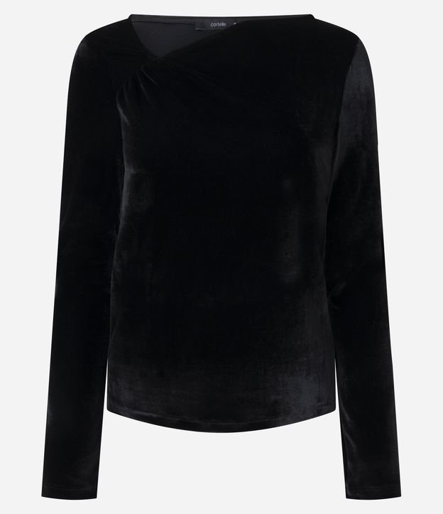 Blusa em Veludo com Decote Assimétrico Preto