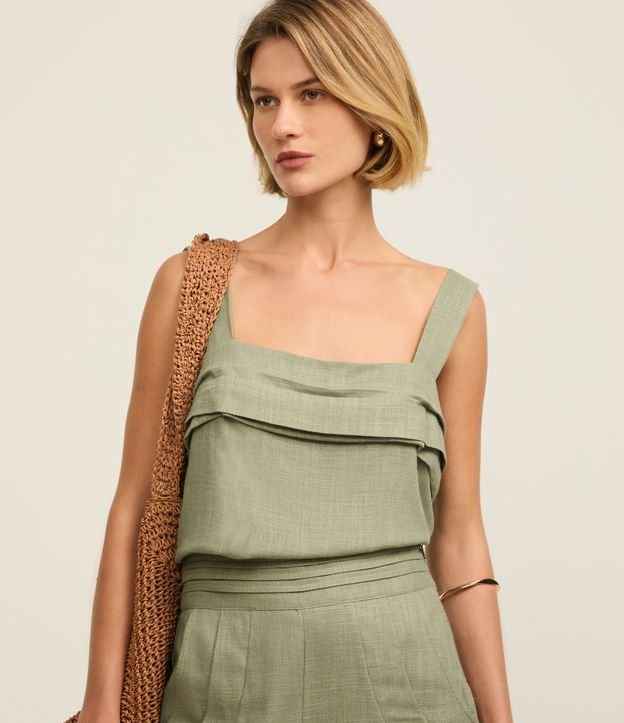 Blusa em Viscolinho com Alça Larga e Pregas no Decote Verde
