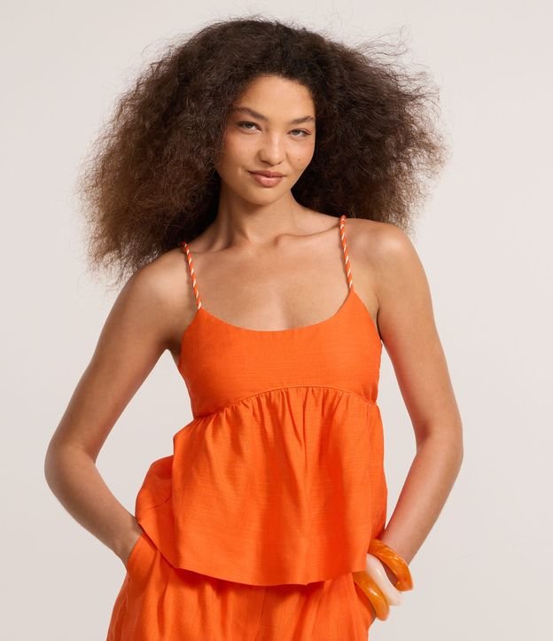 Blusa em Viscolinho com Babado e Alça Bicolor Laranja