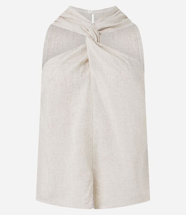 Blusa em Viscolinho com Decote Halter Torcido e Fenda Frontal Bege