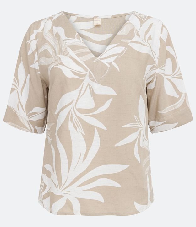 Blusa em Viscolinho com Decote V e Estampa Folhagem