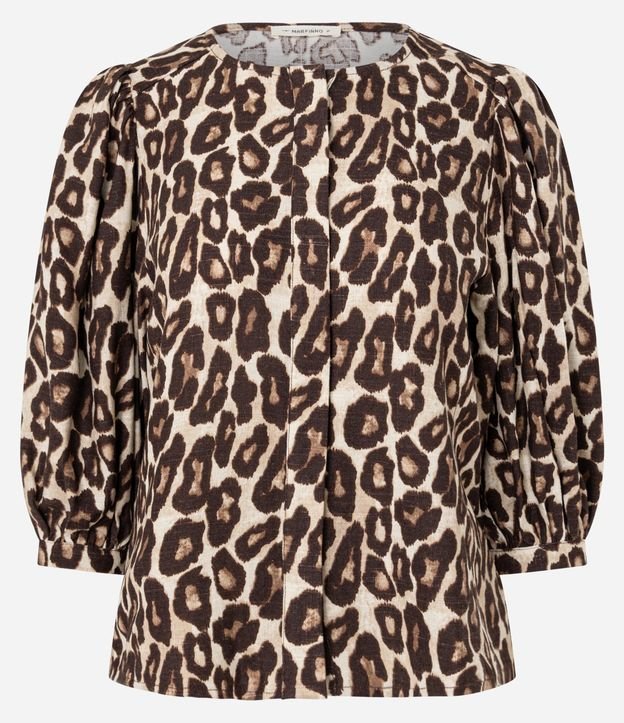 Blusa em Viscolinho com Mangas Bufantes e Estampa Animal Print Marrom