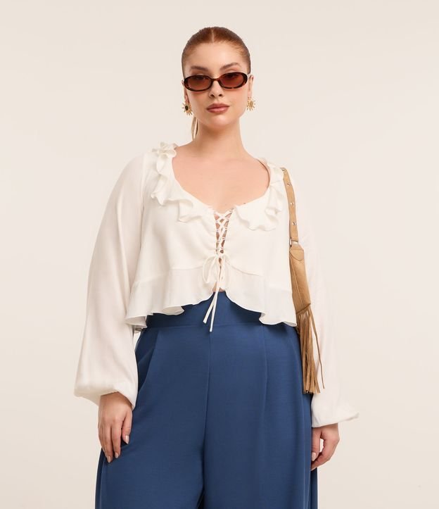 Blusa em Viscose com Amarração Frontal e Babados Curve & Plus Size
