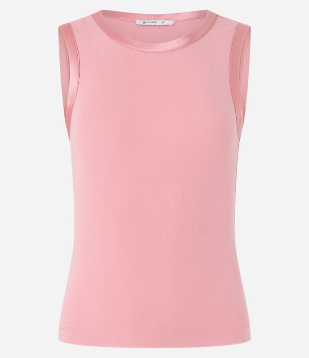 Blusa sem mangas confeccionada em viscose mais sustentável com detalhe em cetim na cava e sem estampa. Peça tem modelagem mais justinha.