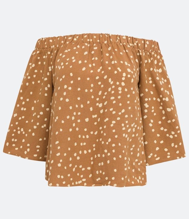 Blusa em Viscose com Decote Ombro a Ombro e Estampa Poá Marrom