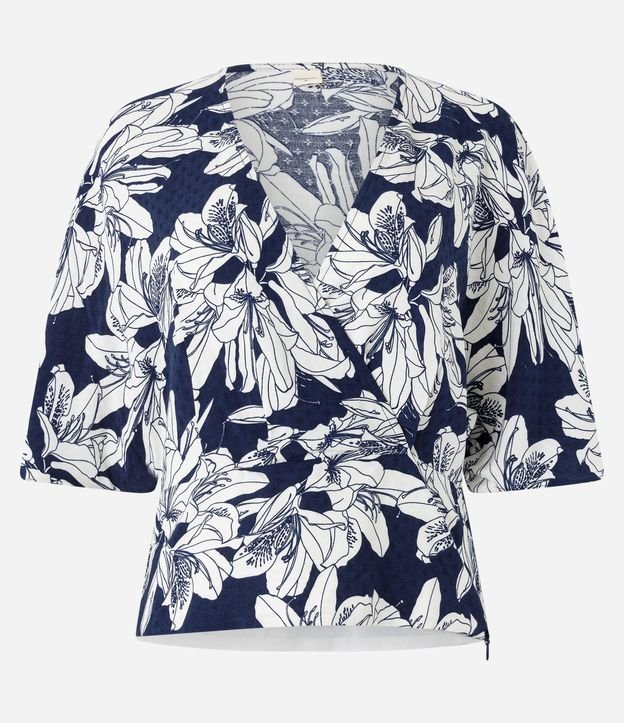 Blusa em Viscose com Devote Transpassado e Estampa Floral Azul