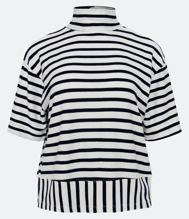 Blusa em Viscose com Gola Alta e Estampa de Listras