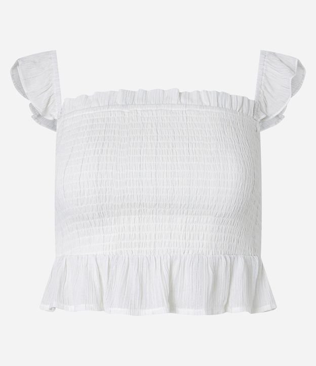 Blusa em Viscose com Lastex e Babado com Fio Metalizado Branco