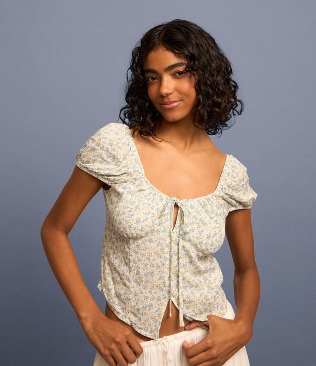Blusa em Viscose Floral Liberty com Amarração e Abertura Frontal