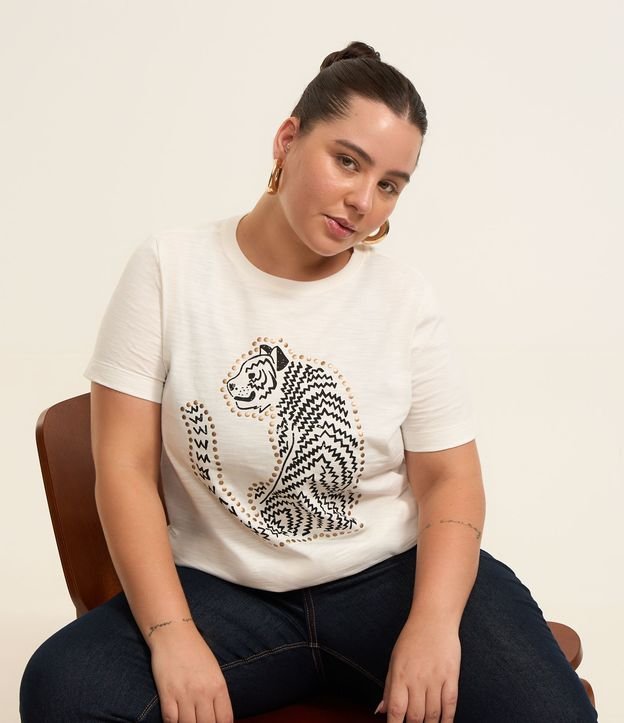 Blusa Estampada de Tigre com Tachinhas Curve & Plus Size