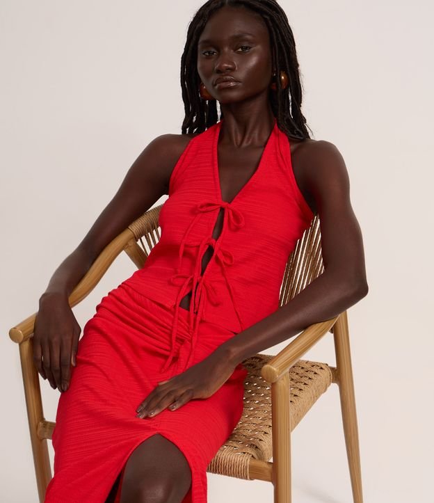 Blusa Frente Única com Amarrações e Texturizada Vermelho