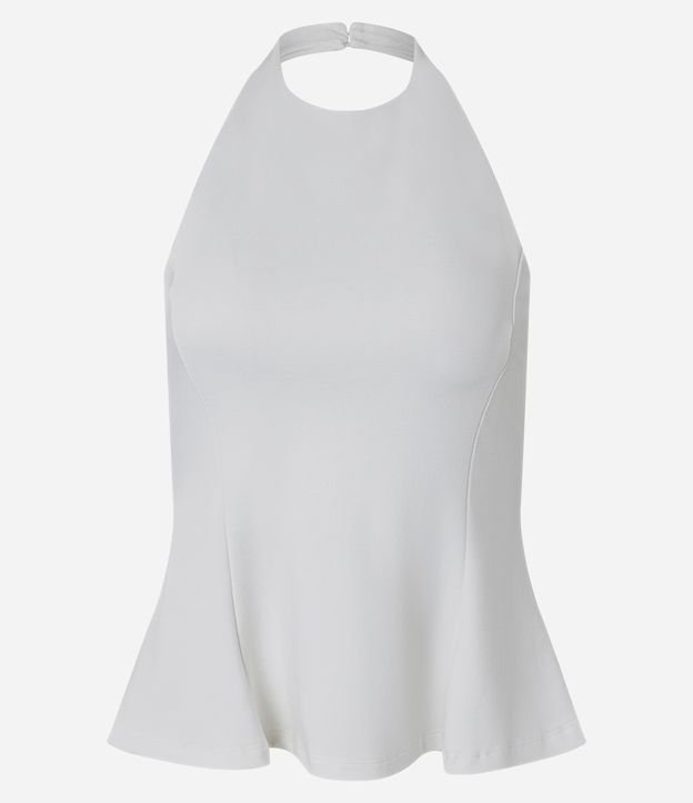 Blusa feminina confeccionada em ponto Roma mais sustentável através de boas práticas ambientais, no modelo frente única e peplum, sem estampa.