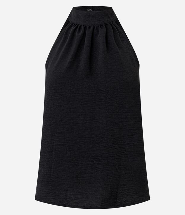 Blusa Frente Única em Crepe com Amarração na Gola Alta Preto