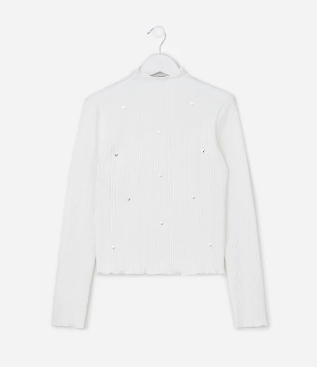 Blusa Infantil Baby Look Canelado com Rebites Corações – Tam 7 a 16 Anos Off White