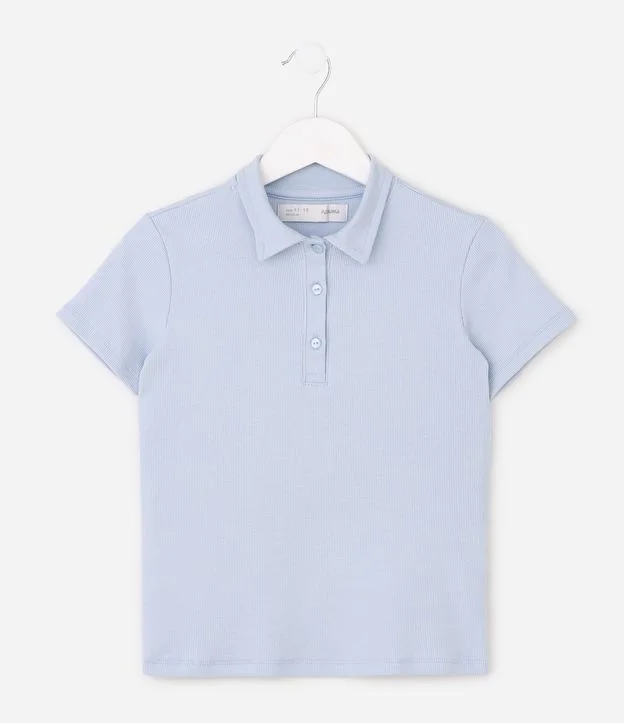 Blusa Infantil Baby Look com Gola Polo – Tam 5 a 16 Anos Azul Bebê
