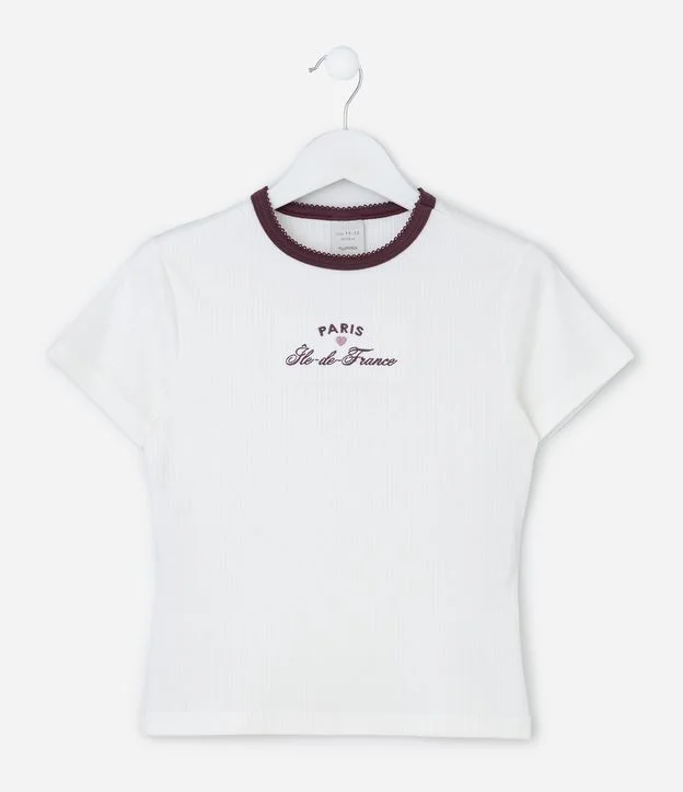 Blusa Infantil Baby Look em Malha Maquinetada com Lettering Bordado – Tam 5 a 14 Anos Off White