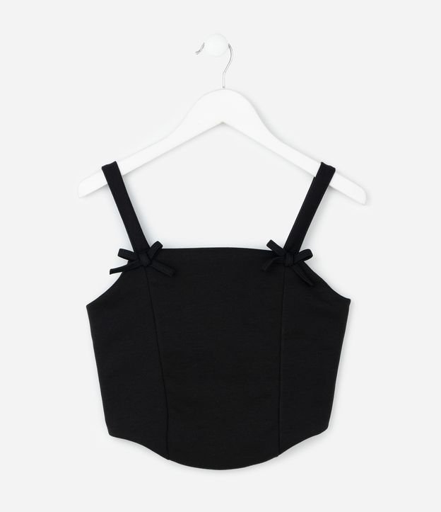 Blusa Infantil Baby Look em Ponto Roma com Lacinhos – Tam 5 a 14 Anos Preto