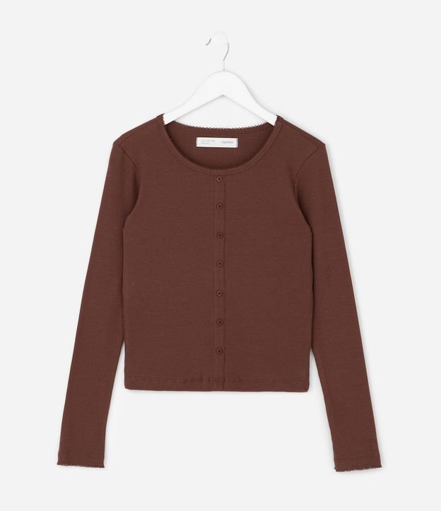 Blusa Infantil Baby Tee com Abotoamento Frontal – Tam 7 a 16 Anos Marrom Escuro