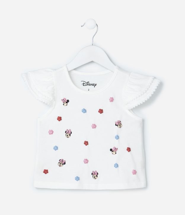 Blusa Infantil com Babadinho e Estampa Minnie - Tam 1 a 5 Anos Branco