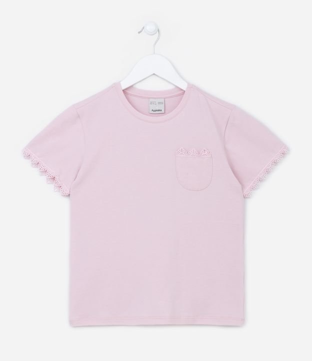 Blusa Infantil com Bolsinho e Detalhes de Renda - Tam 5 a 14 anos