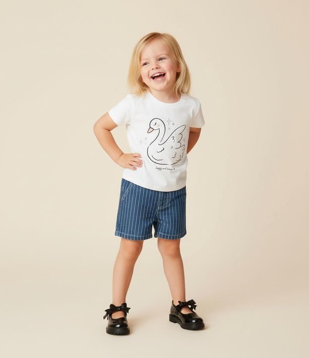 Blusa Infantil com Estampa Cisne - Tam 1 a 6 Anos Branco