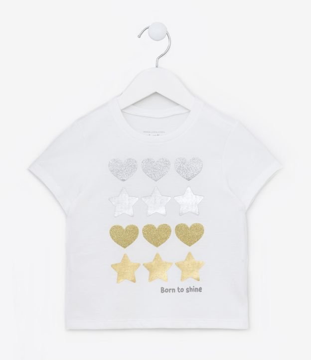 Blusa Infantil com Estampa Corações e Estrelas com Brilho - Tam 1 a 5 Anos