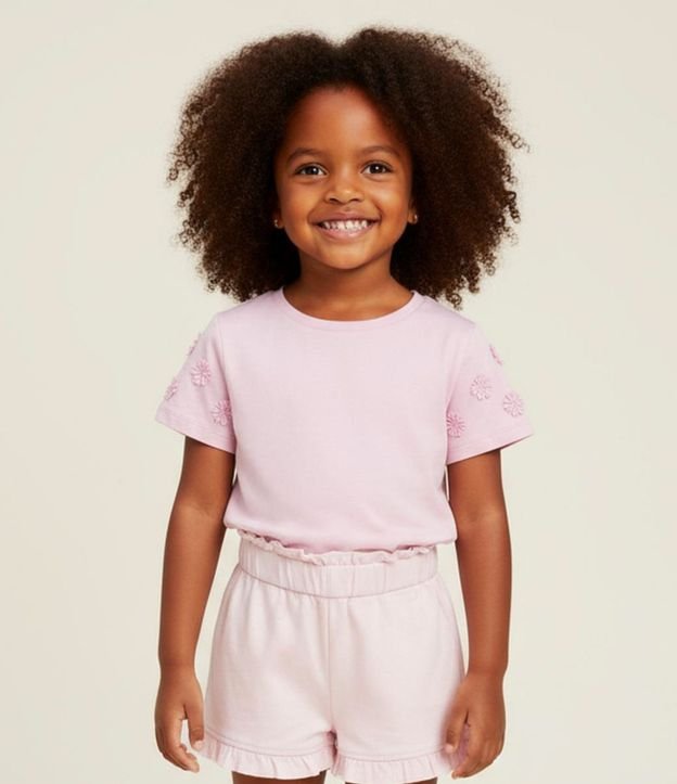 Blusa Infantil com Florzinhas Aplicadas na Manga - Tam 1 a 6 Anos Rosa