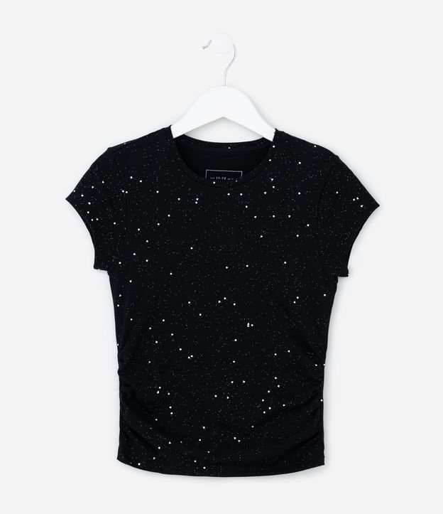 Blusa Infantil com Franzido Lateral e Brilhos - Tam 5 a 14 Anos Preto