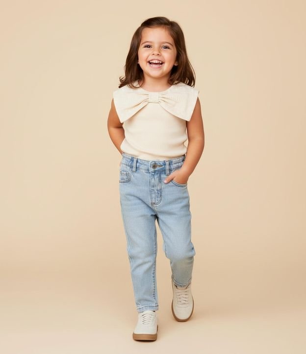 Blusa Infantil com Gola Laço Texturizada - Tam 1 a 6 Anos