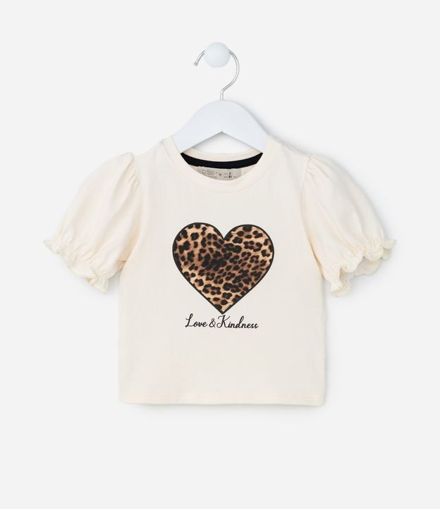 Blusa Infantil com Manga Bufante e Estampa Coração - Tam 1 a 6 Anos