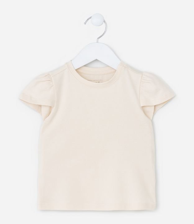 Blusinha infantil confeccionada em algodão, com gola redonda e manguinha curta transpassada. A peça é confeccionada com boas práticas ambientais e algodão certificado bci.