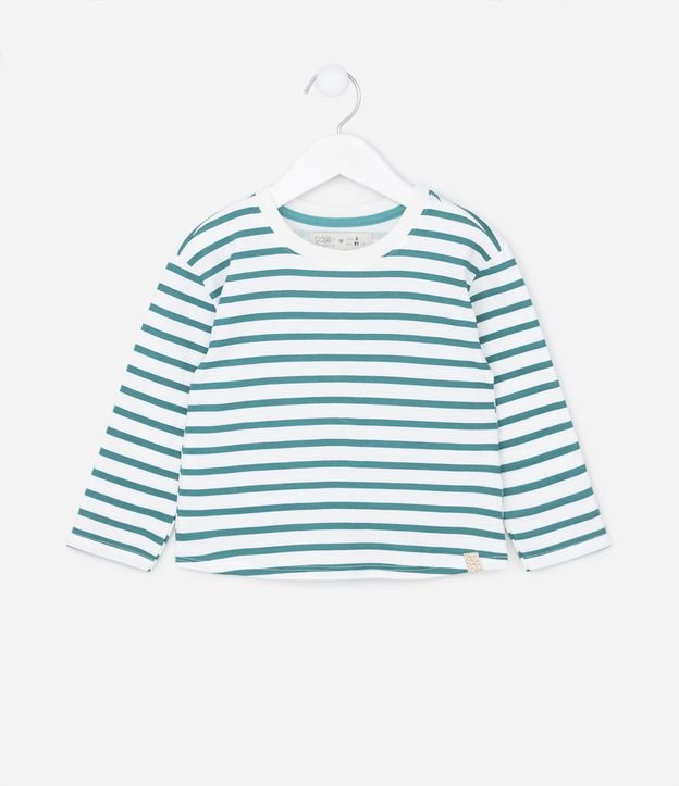 Blusa Infantil em Meia Malha com Estampa de Listras - Tam 1 A 5 Azul/Branco
