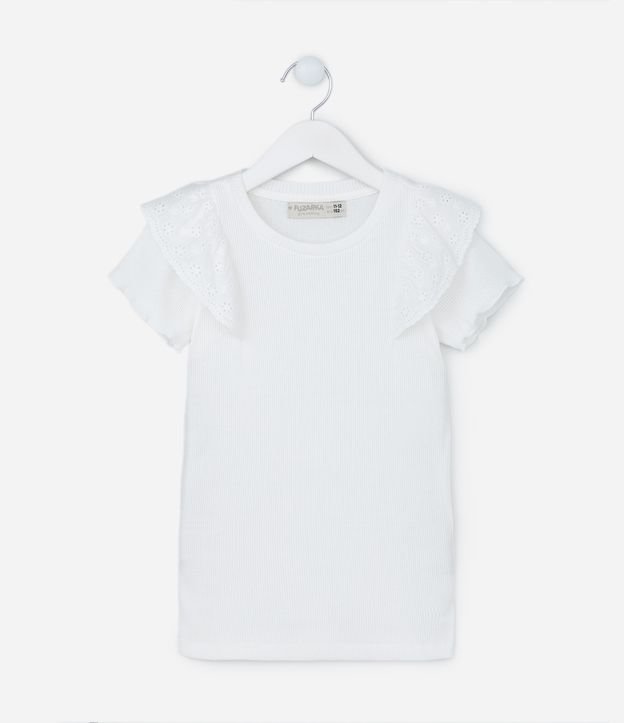 Blusa Infantil em Ribana com Babados Broderie - Tam 5 a 14 Anos