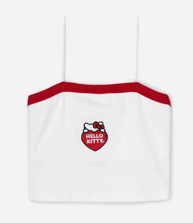 Blusa Infantil em Ribana com Bordado Hello Kitty - Tam 5 a 14 Anos Branco/Vermelho