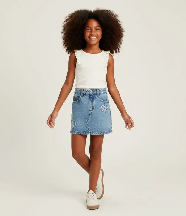 Blusa Infantil em Ribana com Detalhe de Broderie – Tam 5 a 14 Anos Off White