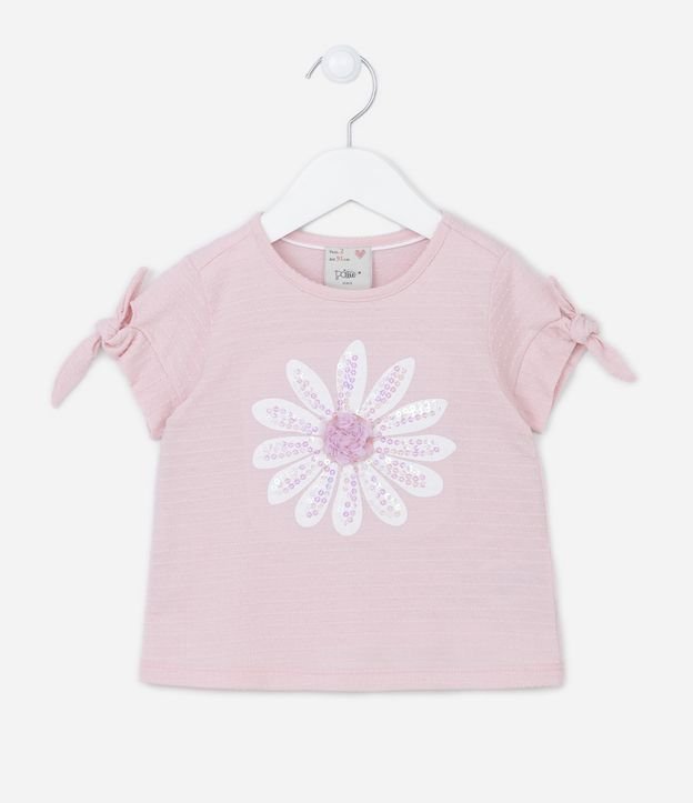 Blusa Infantil Texturizada com Flor em Paetê - Tam 1 a 5 anos