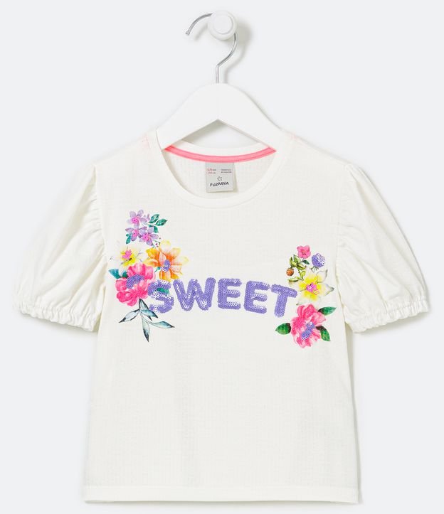 Blusa Infantil Texturizada Estampa Sweet com Flores - Tam 5 a 14 anos