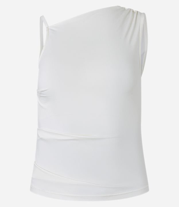 Blusa Jersey com Drapeado no ombro e Alça Fina Branco