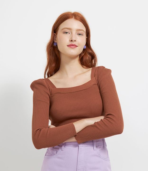 Blusa em Tricô com Decote Quadrado e Manga Longa