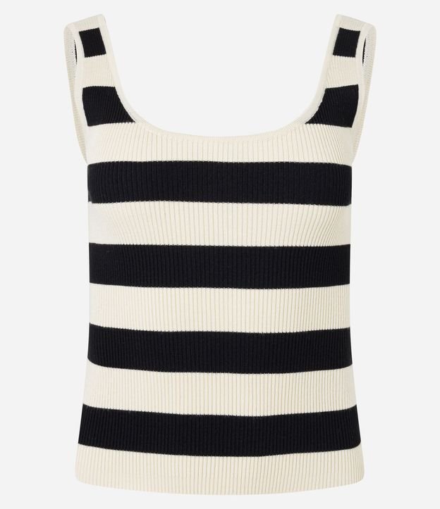 Blusa ajustada, sem mangas, confeccionada em tricô de caimento leve, com decote U no busto e nas costas. A blusa bicolor tem listras horizontais e textura canelada. Este produto possui viscose certificada em sua composição, sendo ambientalmente mais responsável.