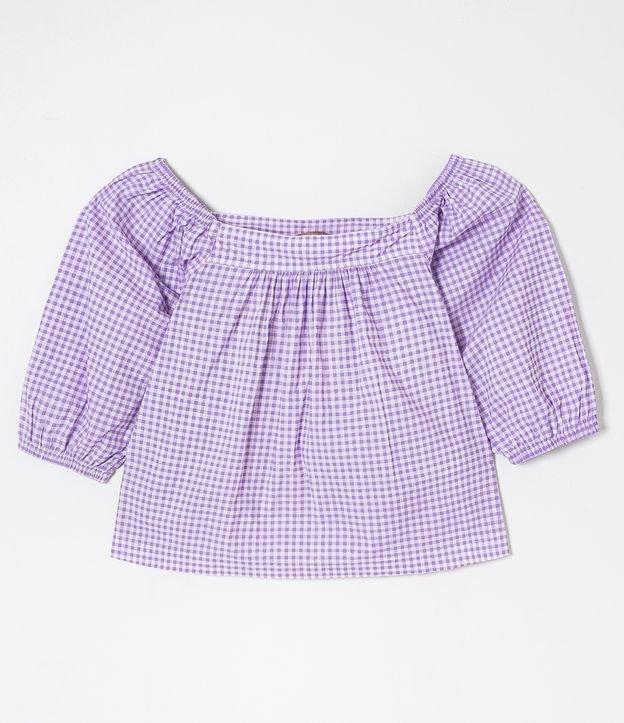 Blusa Manga Bufante em Algodão Estampa Xadrez Vichy Curve & Plus Size