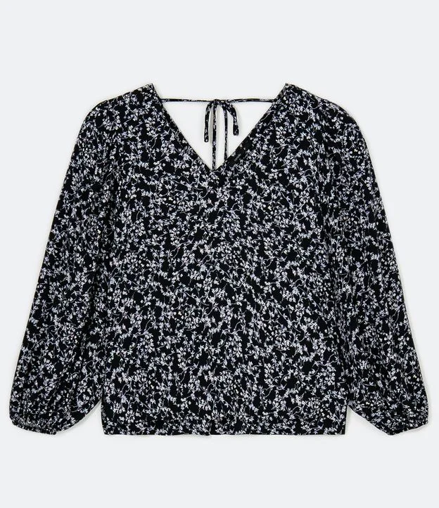 Blusa Manga Bufante em Crepe Estampa Floral com Amarração