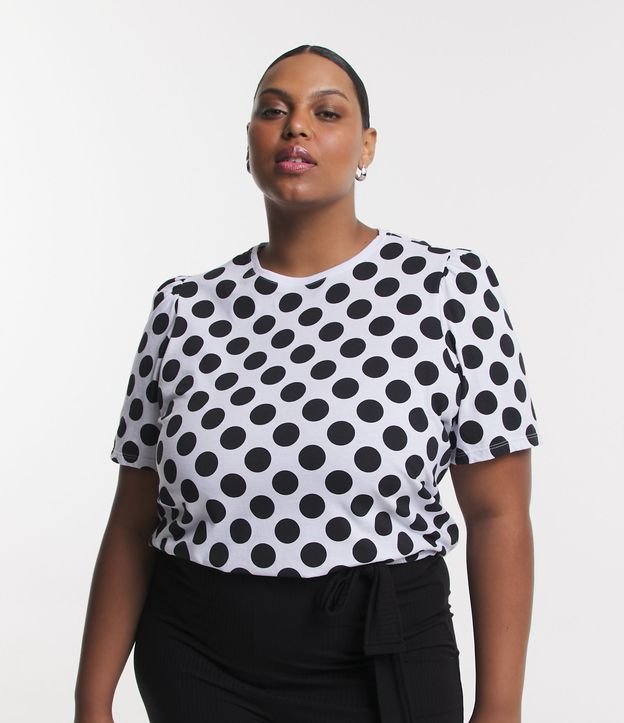 Blusa Manga Bufante em Meia Malha com Poás Estampados Curve & Plus Size
