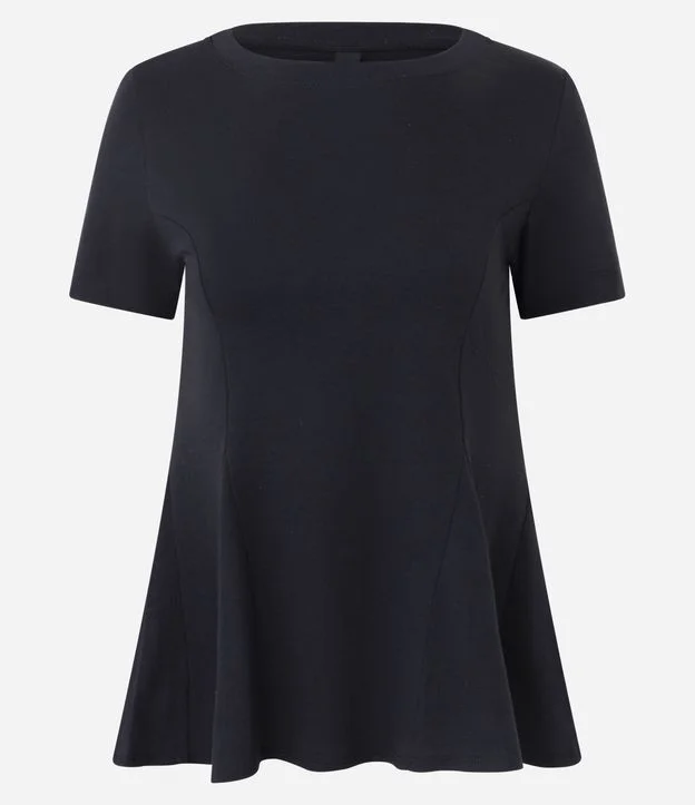 Blusa em meia malha com modelagem estruturada que cria leve efeito evasê. Possui gola simples, mangas curtas e caimento confortável, ideal para compor looks casuais com elegância e praticidade. Confeccionada em algodão naturalmente colorido, garantindo toque suave.