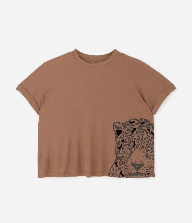 Blusa Manga Curta com Estampa de Onça Curve & Plus Size Marrom