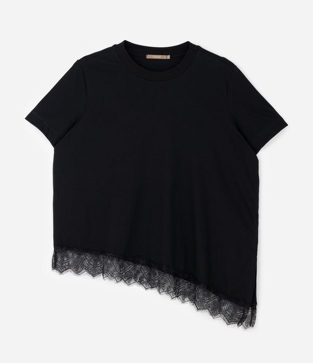 Blusa Manga Curta com Renda Irregular na Barra Curve & Plus Size Preto