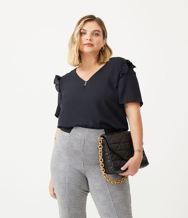 Blusa Manga Curta em Chiffon com Babados e Botões Curve & Plus Size