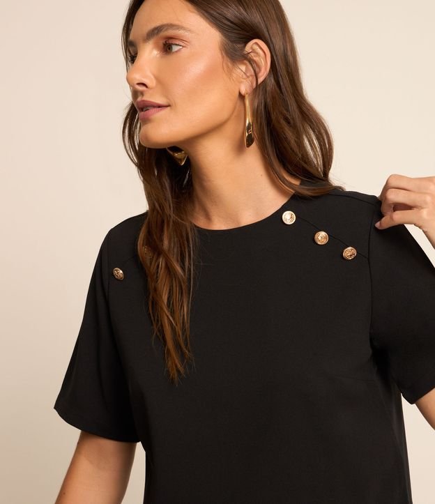 Blusa Manga Curta em Crepe com Botões no Ombro